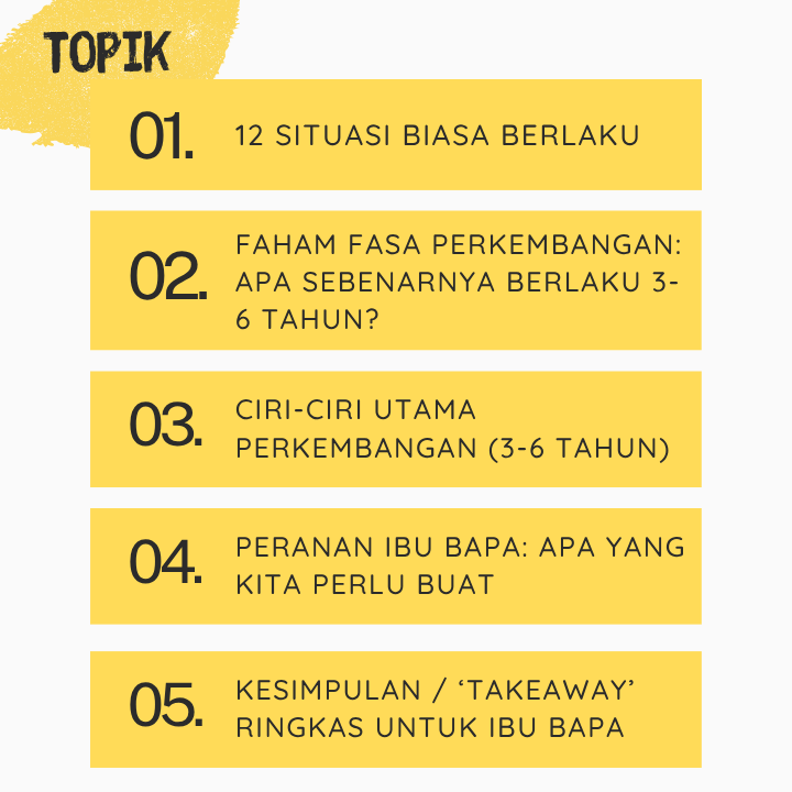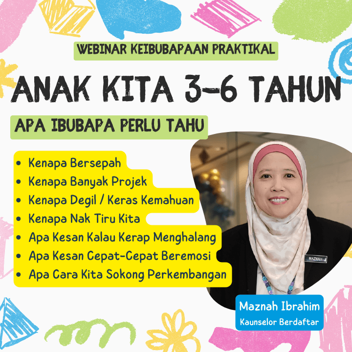 Anda perlu dengarkan perkongsian 1 jam saya berkenaan perkembangan anak kita yang berusia 3-6 tahun dari sudut perkembangan sosio-emosi, pemikiran dan psikoseksual.